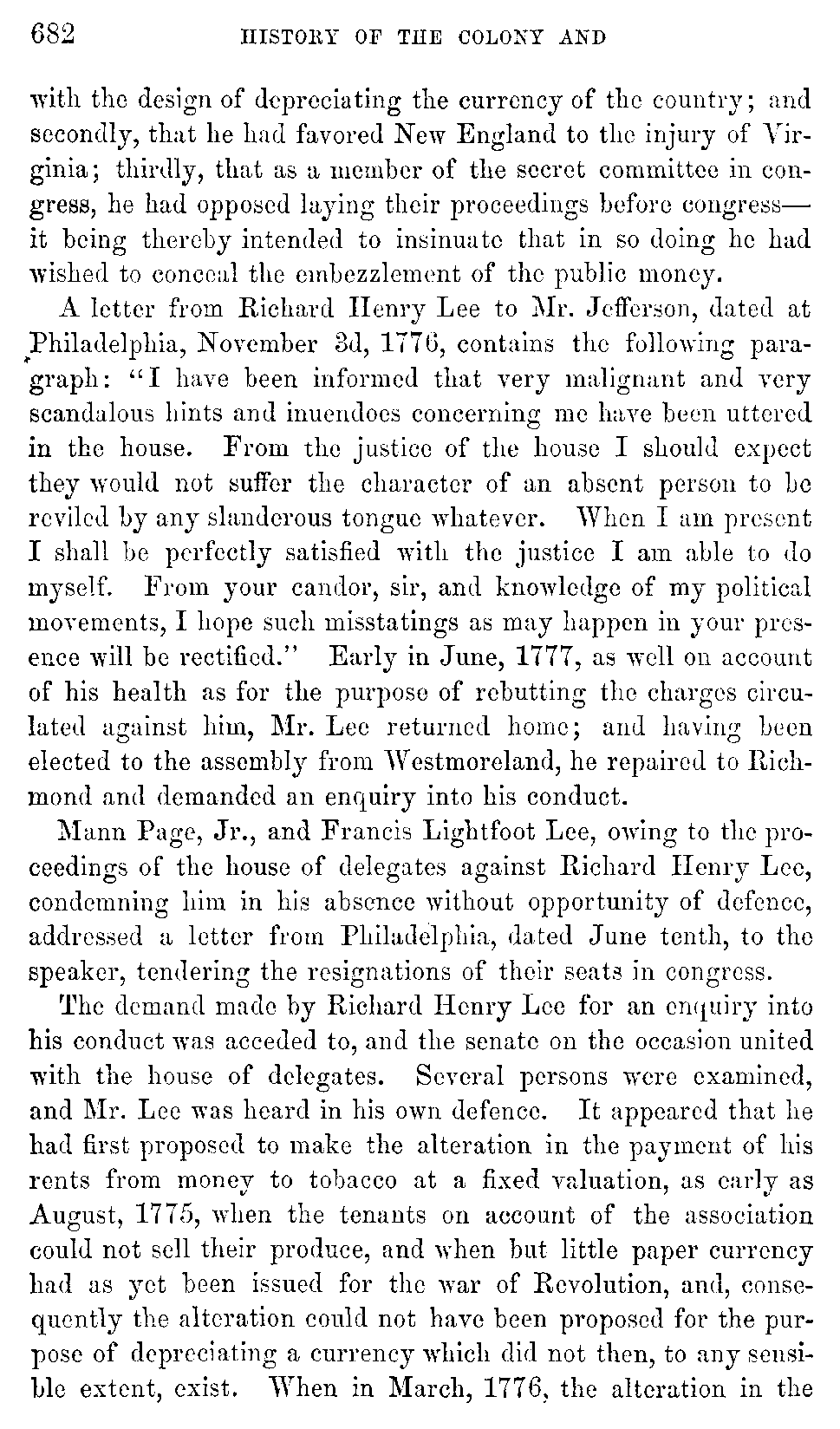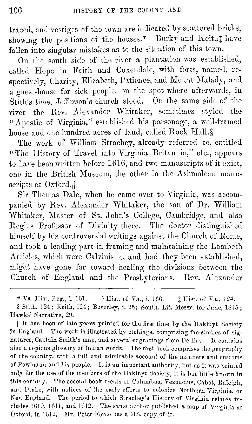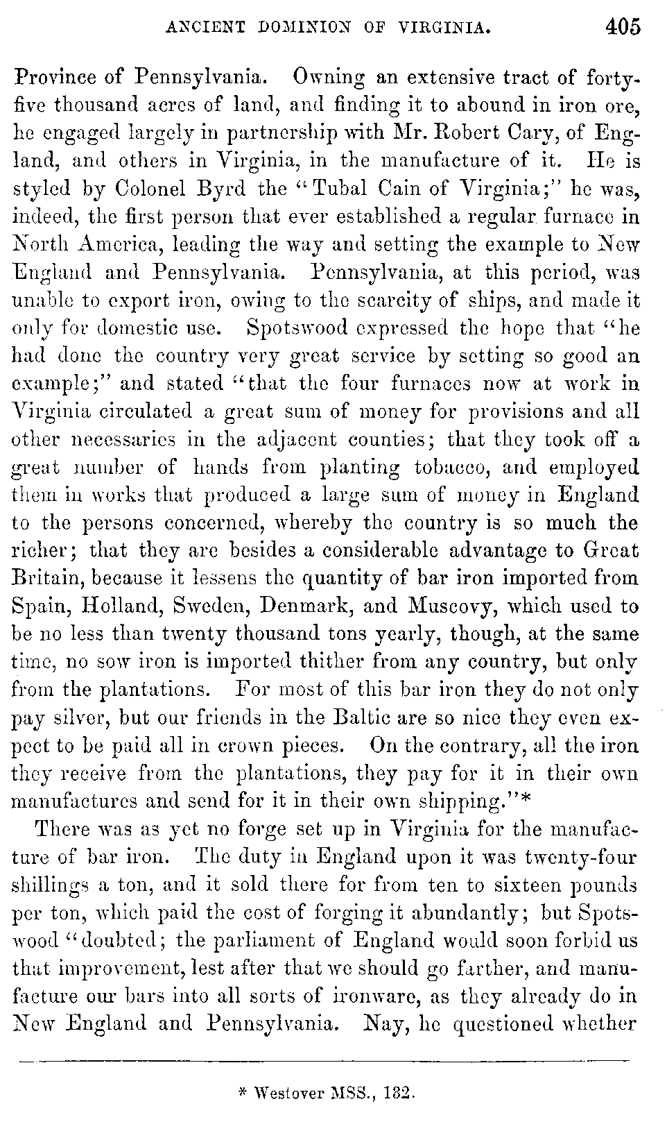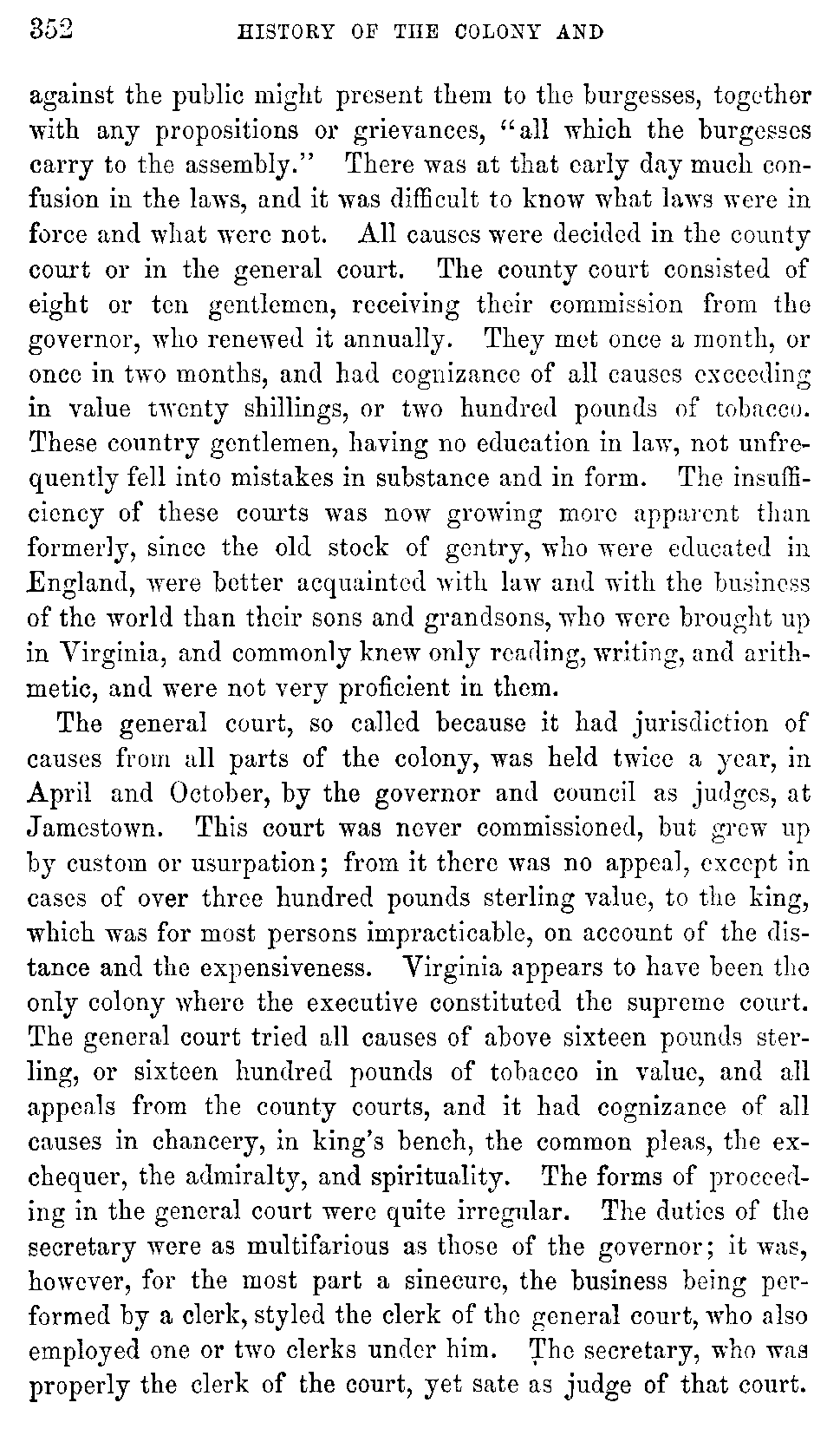 Although Virginia must be content with a secondary and unpretending rank in the general department of history, yet in the abundance and the interest of her historical materials, she may, without presumption, claim pre-eminence among the Anglo-American colonies. While developing the rich resources with which nature has so munificently endowed her, she ought not to neglect her past, which teaches so many useful lessons, and carries with it so many proud recollections. Her documentary history, lying, much of it, scattered and fragmentary, in part slumbering in the dusty oblivion of Transatlantic archives, ought to be collected with pious care, and embalmed in the perpetuity of print.