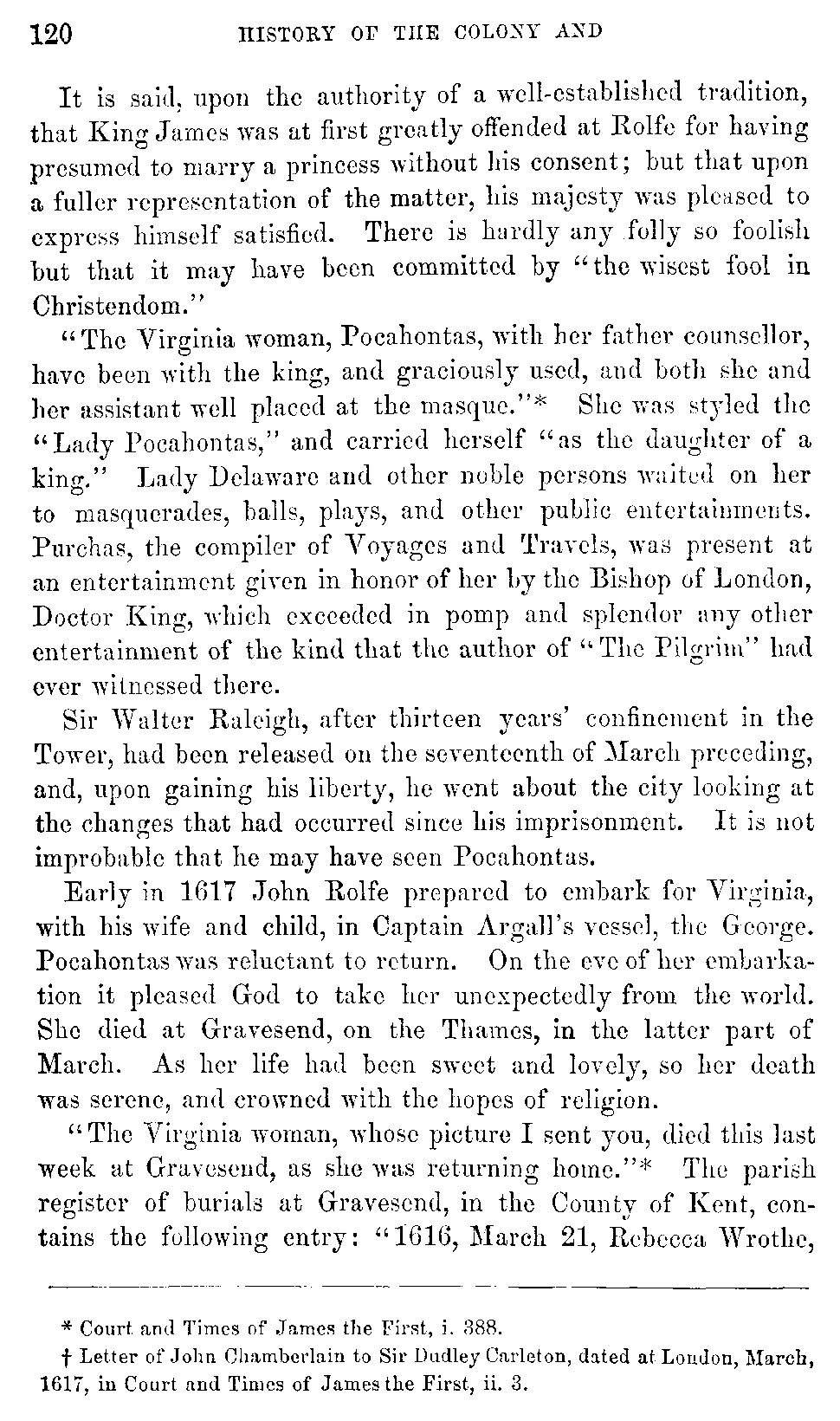 | VIII. | —Pocahontas visits England. Her Death. Yeardley, Deputy Governor. | 112 |
