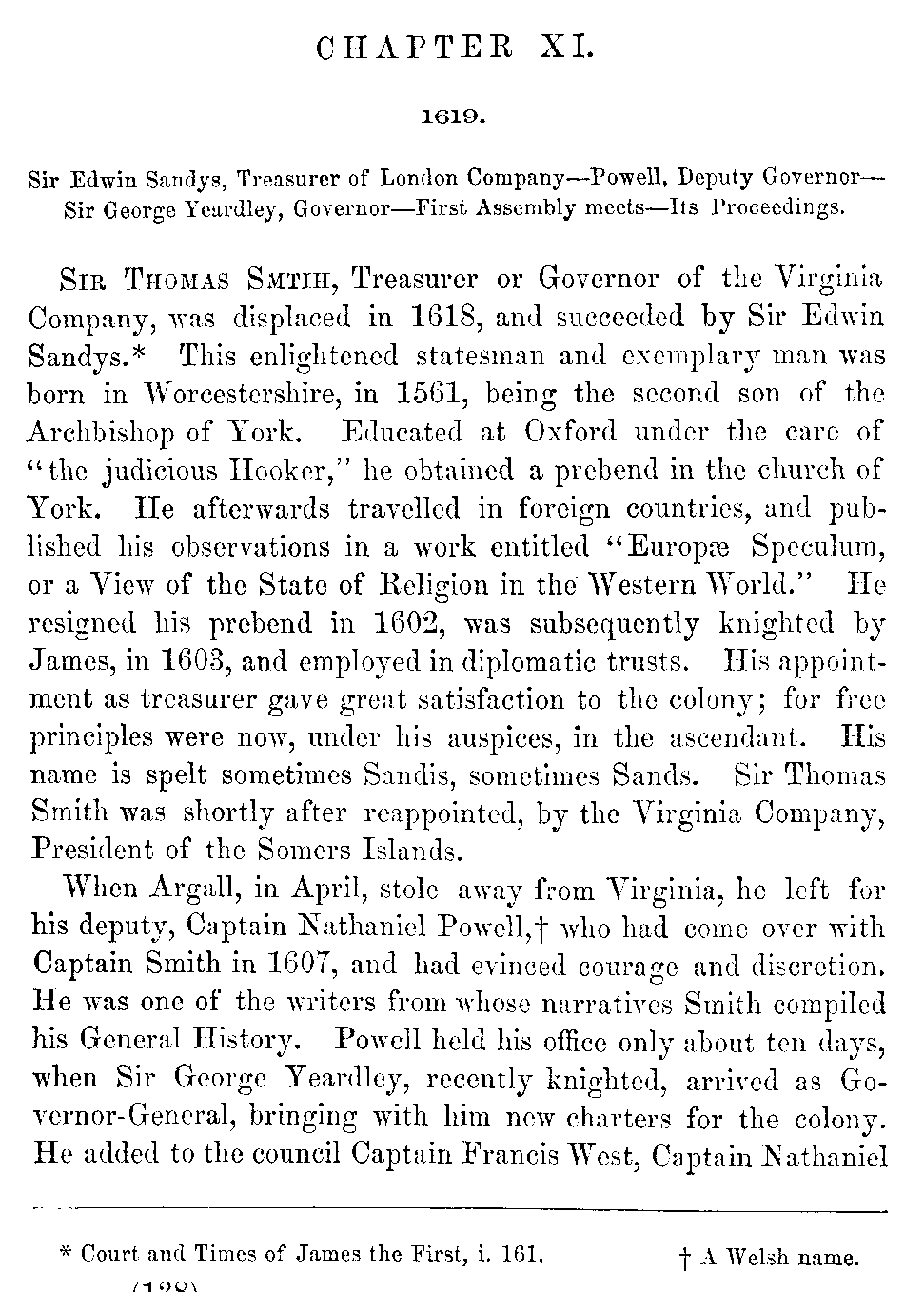 | XI. | —First Assembly of Virginia. Powell, Deputy Governor. Yeardley, Governor. | 138 |