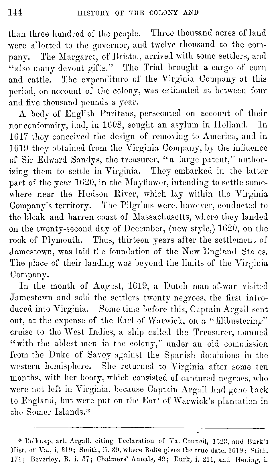 | XII. | —Negroes imported into Virginia. Yeardley, Governor. | 143 |