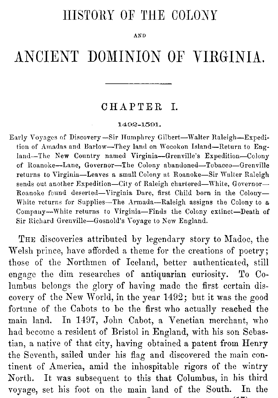 | Chapter I. | —Early Voyages of Discovery. Sir Walter Raleigh's Colony of Virginia. | 17 |