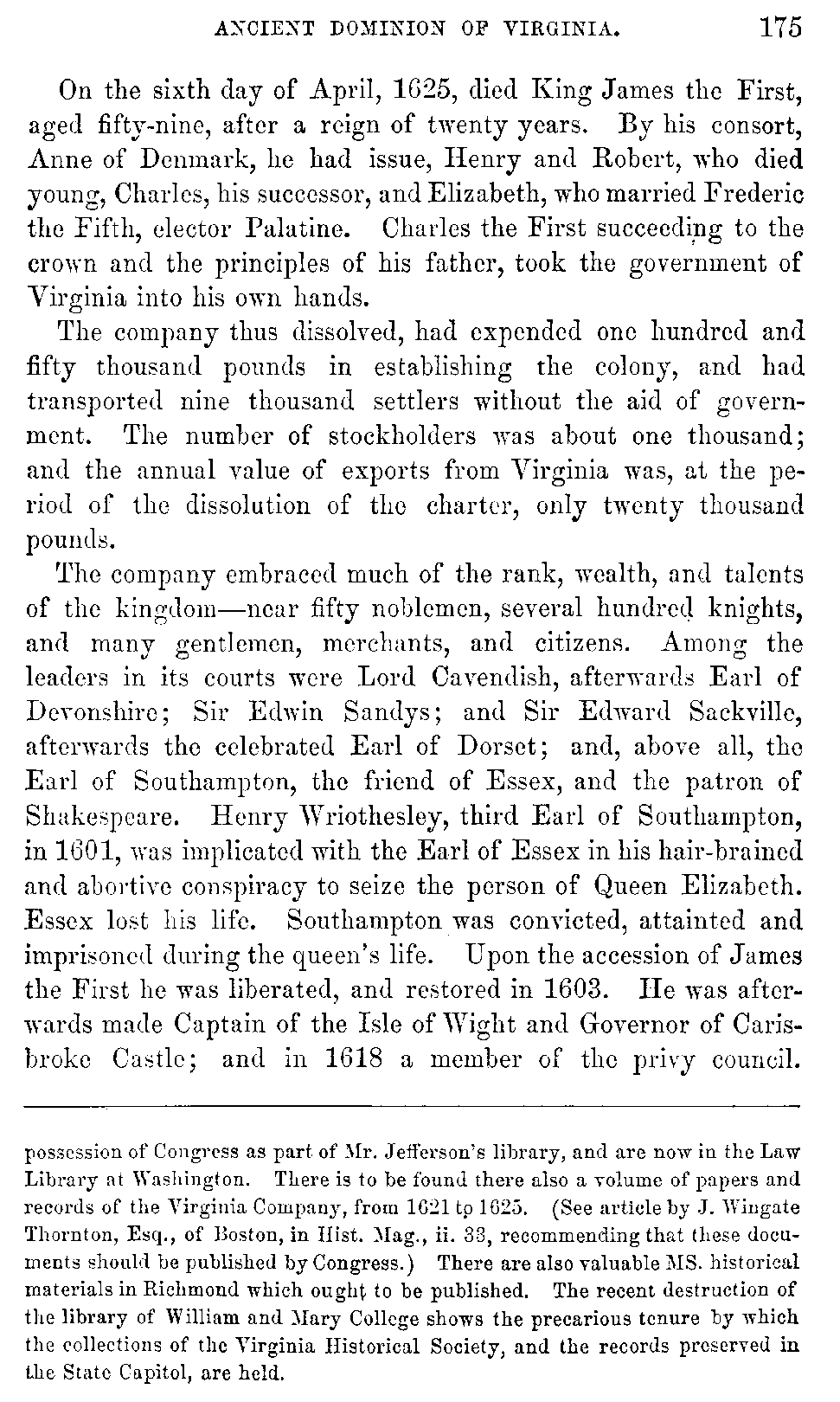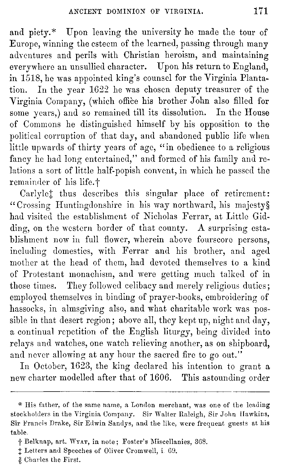 | XVIII. | —Dissolution of Charter of Virginia Company. Earl of Southampton, Nicholas Ferrar, and Sir Edwin Sandys. | 169 |