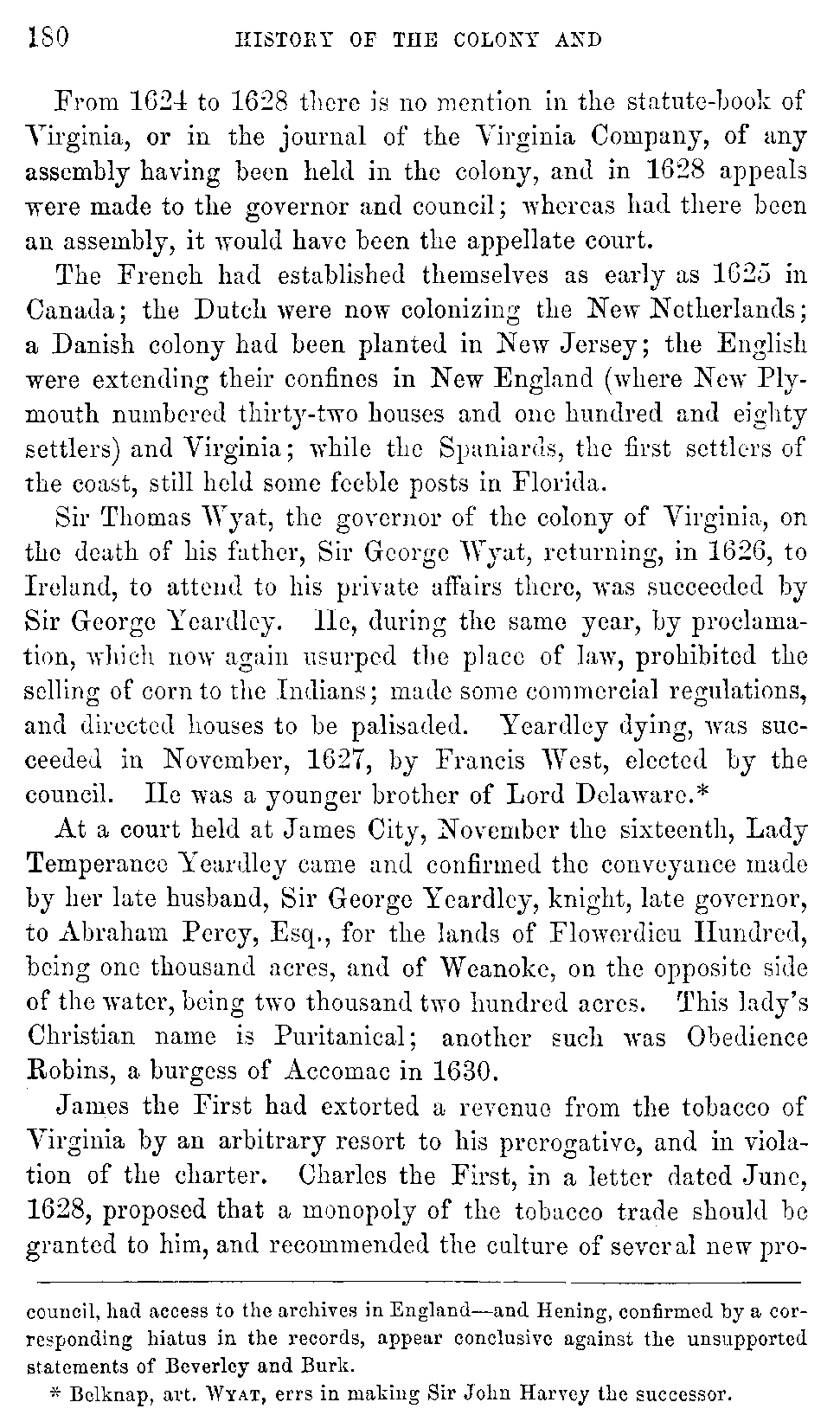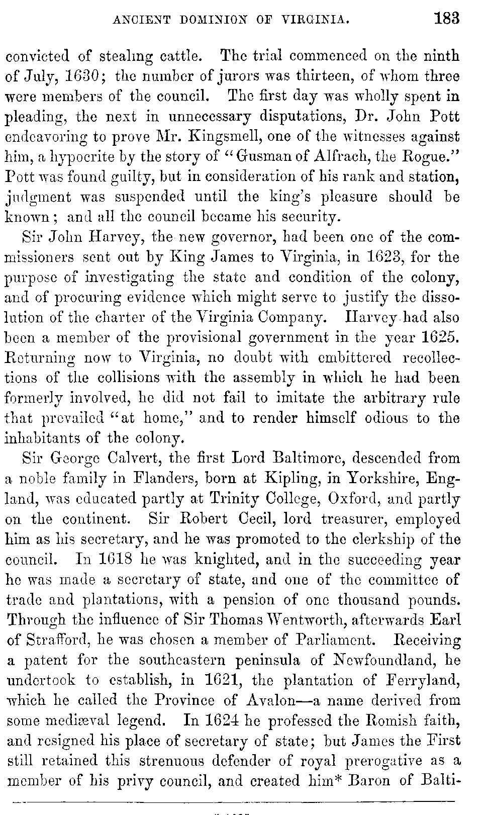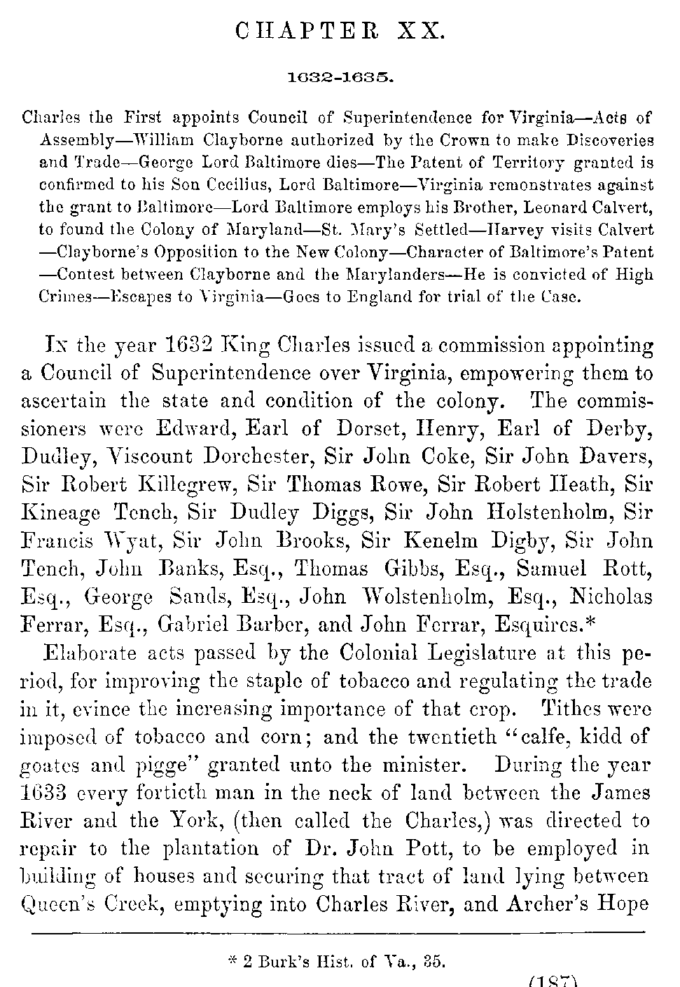 | XIX. | —Royal Government established in Virginia. Yeardley, Governor. West, Governor. Pott, Governor. Sir John Harvey, Governor. | 179 |
