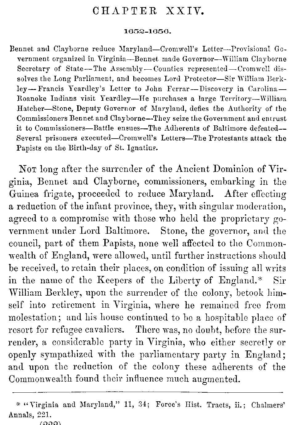 | XXV. | —Virginia during the Protectorate. Digges, Governor. Matthews, Governor. | 233 |
