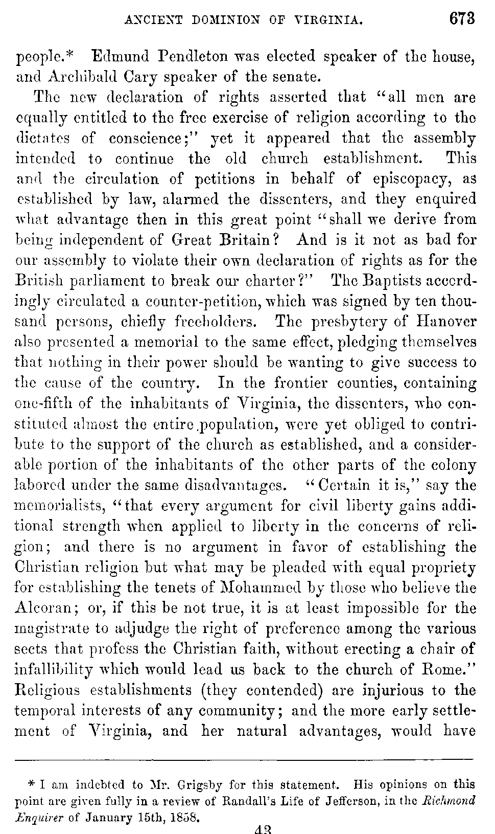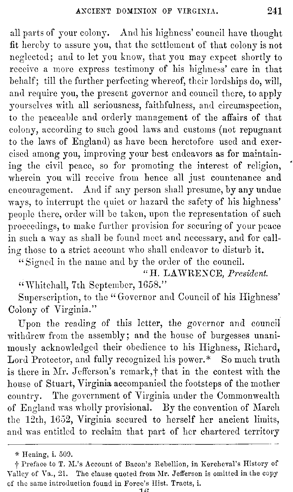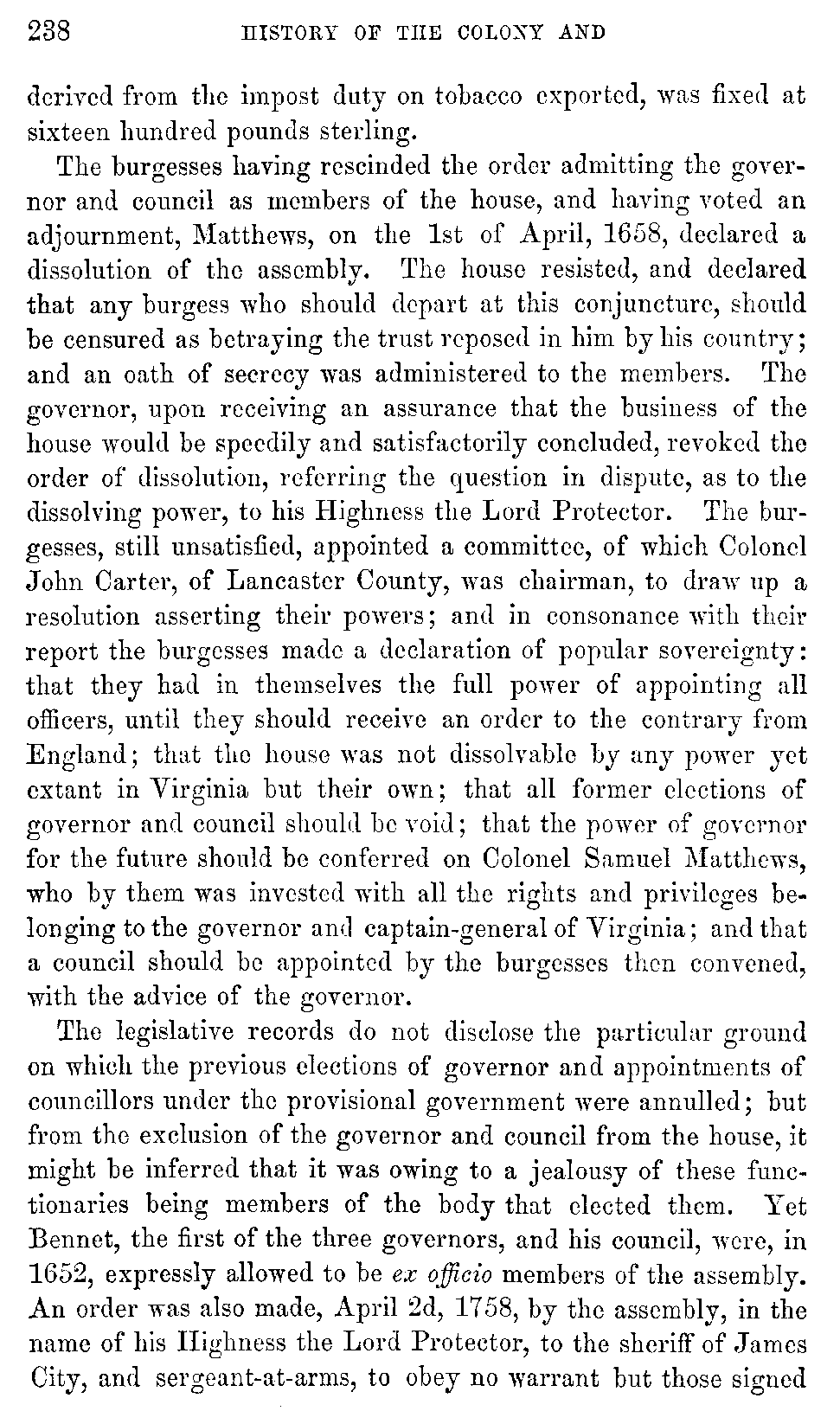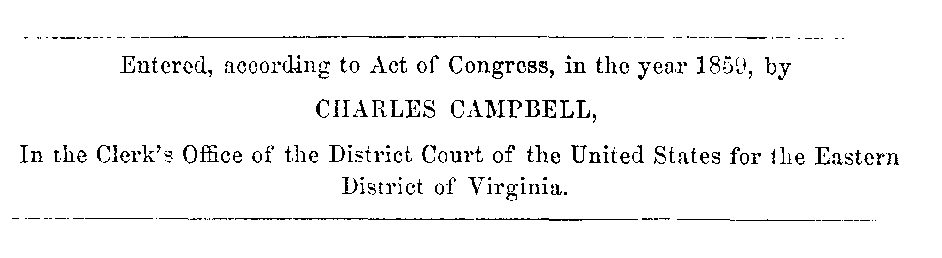 I avail myself of this occasion to express my acknowledgments to Hugh B. Grigsby, Esq., (who has contributed so much to the illustration of Virginia history by his own writings,) for many valuable suggestions, and for having undergone the trouble of revising a large part of the manuscript of this work.