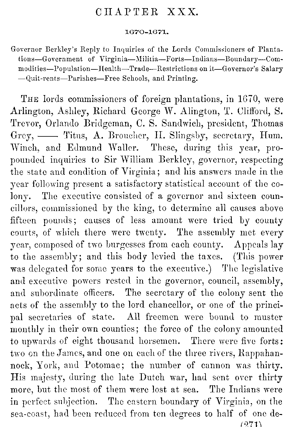 | XXVII. | —Loyalty of Virginia. Miscellaneous Affairs. Morrison, Governor. Berkley, Governor. | 249 |
