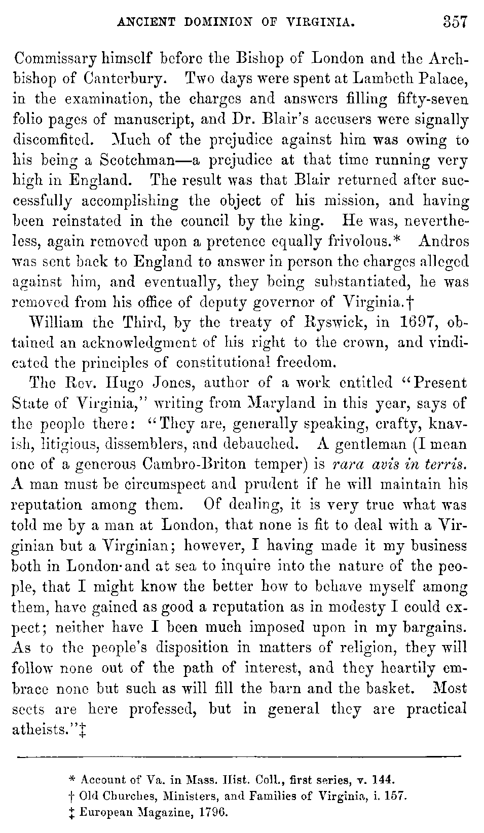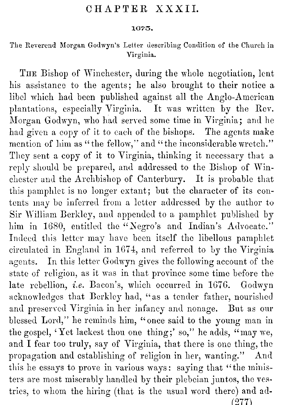 | XXXII. | —Rev. Morgan Godwyn's Account of the Condition of the Church in Virginia. | 277 |