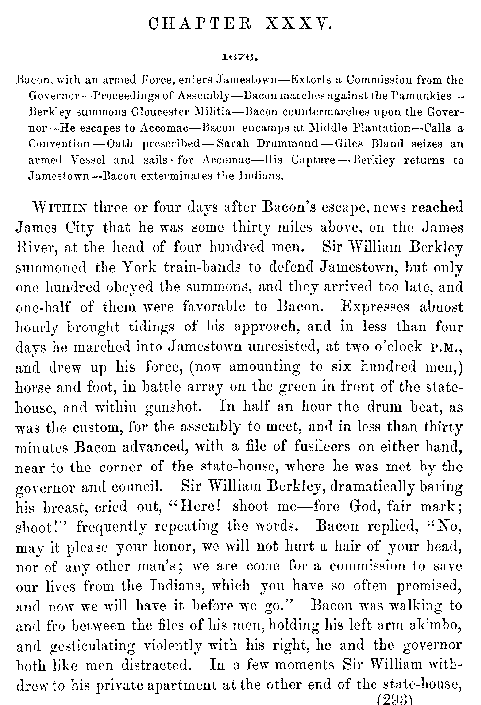 | XXXV. | —Bacon's Rebellion, continued. | 293 |