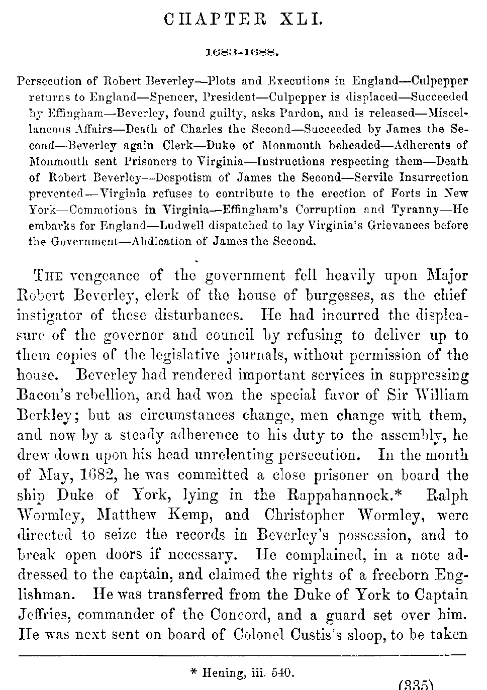 | XLI. | —Effingham, Governor. Death of Beverley. Effingham's Corruption and Tyranny. | 335 |