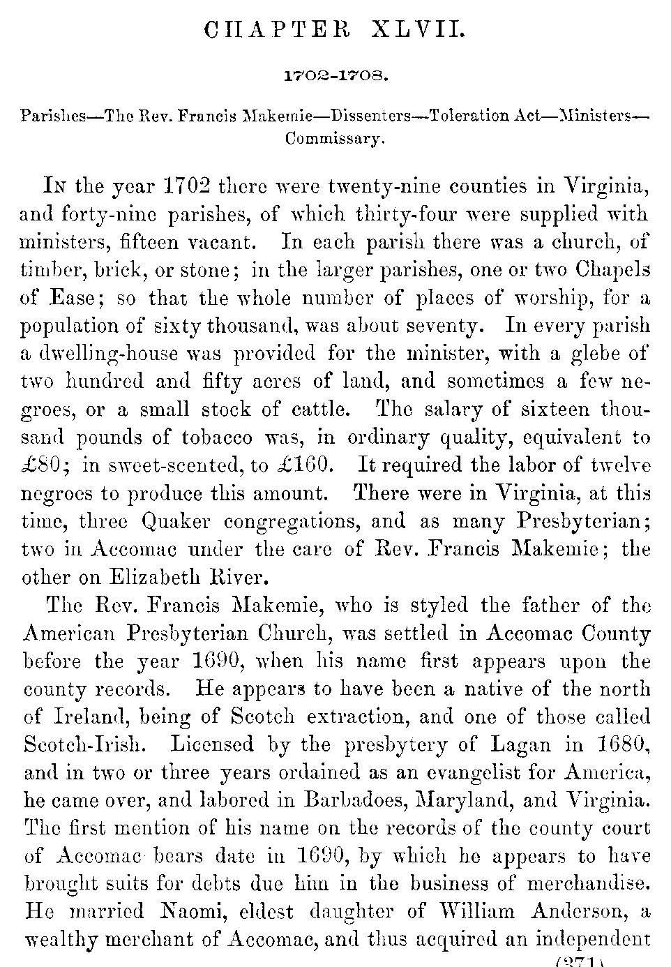 | XLVII. | —Rev. Francis Makemie. Dissenters. | 371 |