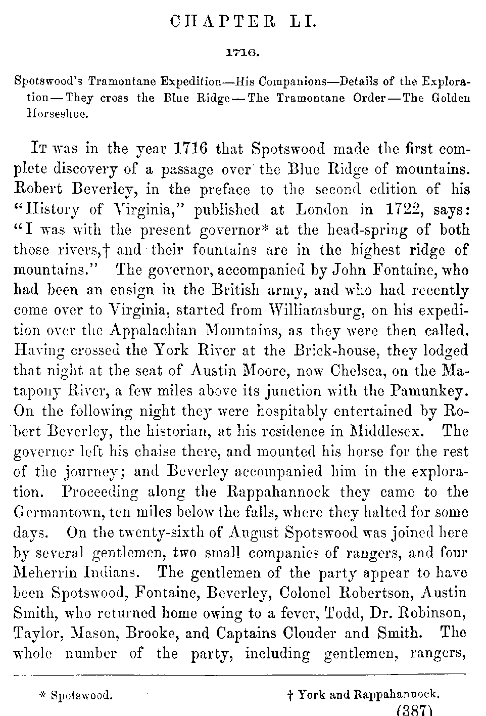 | LI. | —Spotswood's Tramontane Expedition. | 387 |