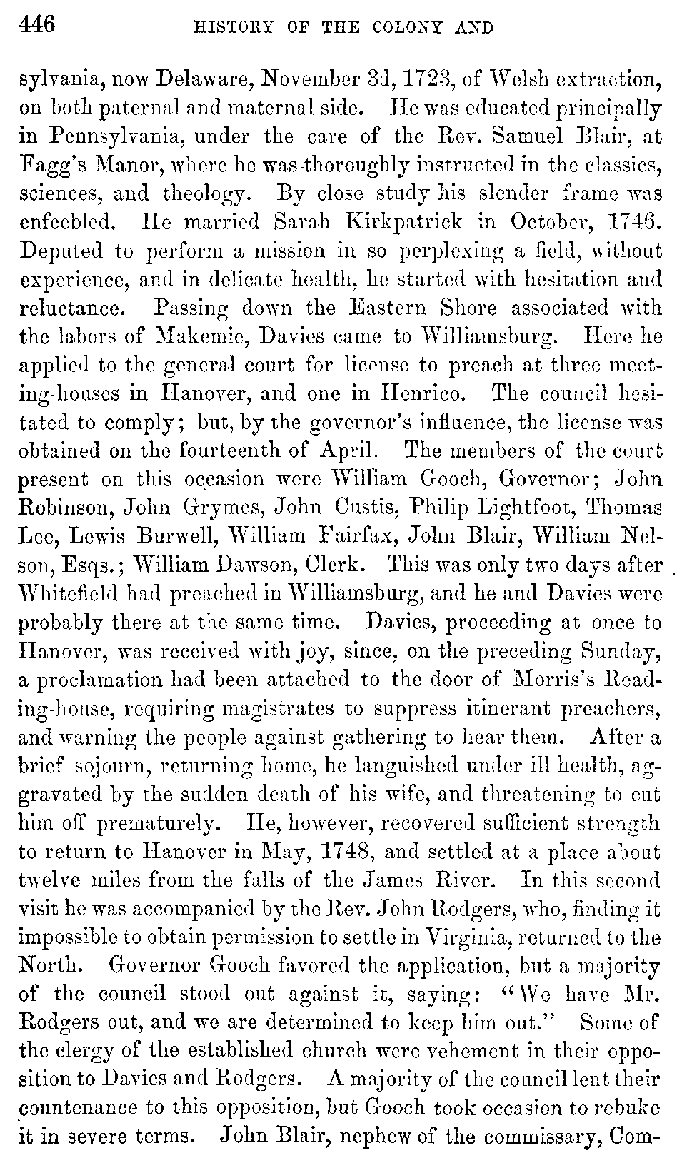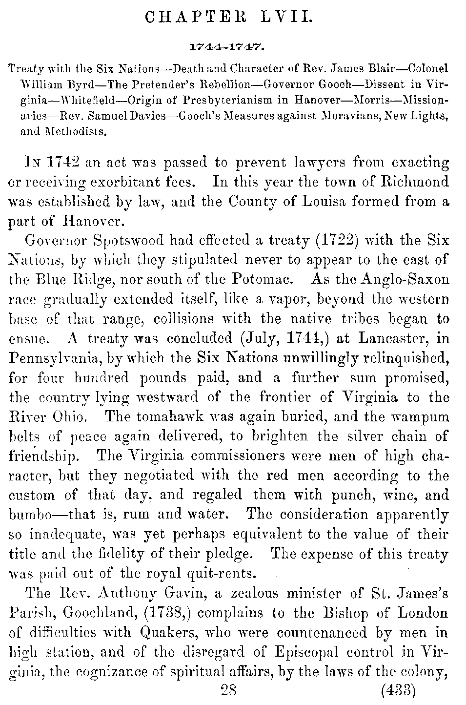 | LVII. | —Rev. James Blair. Governor Gooch and the Dissenters. Morris. Davies. Whitefield. | 433 |