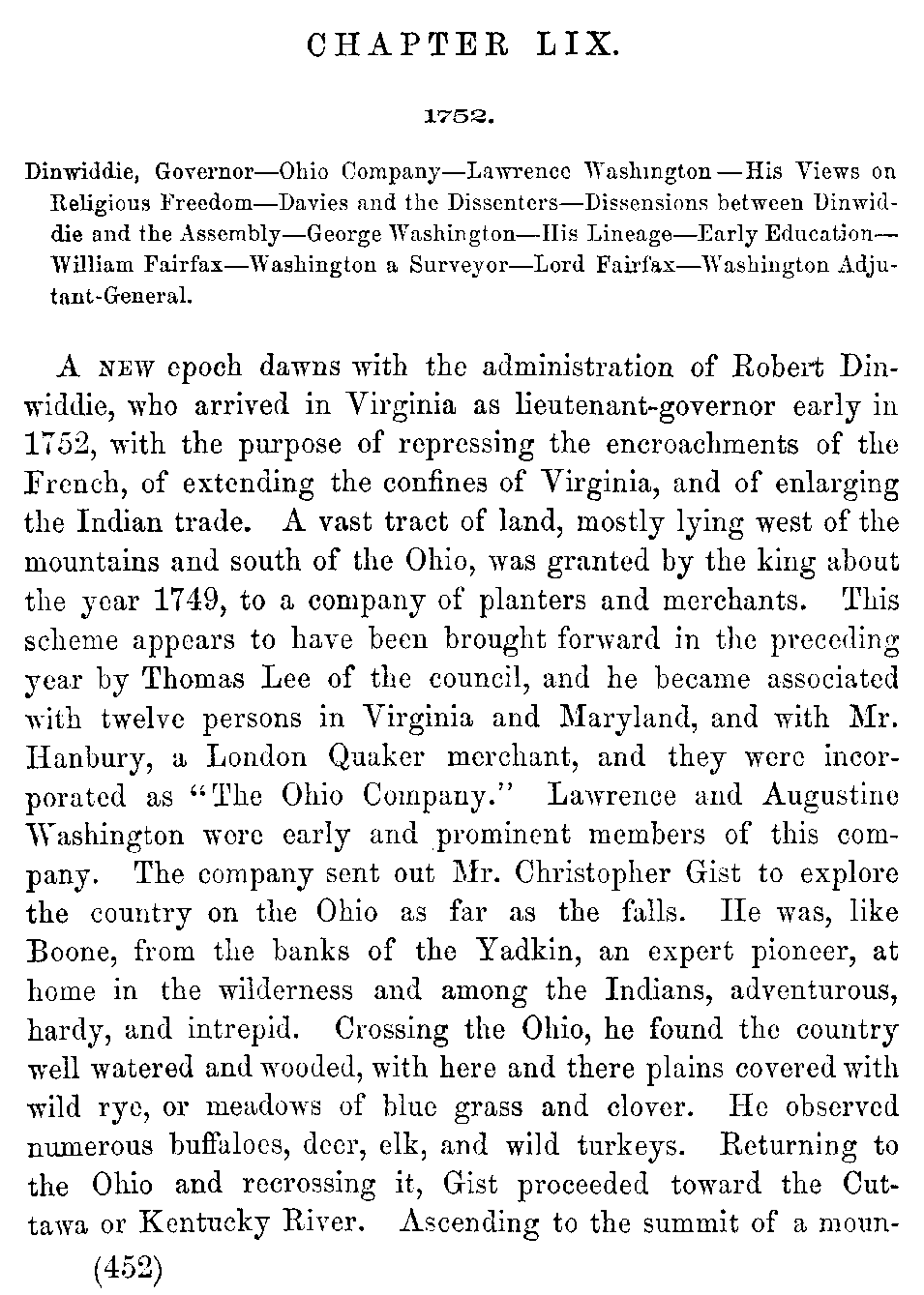 | LIX. | —Dinwiddie, Governor. Davies and the Dissenters. George Washington. Fairfax. | 452 |