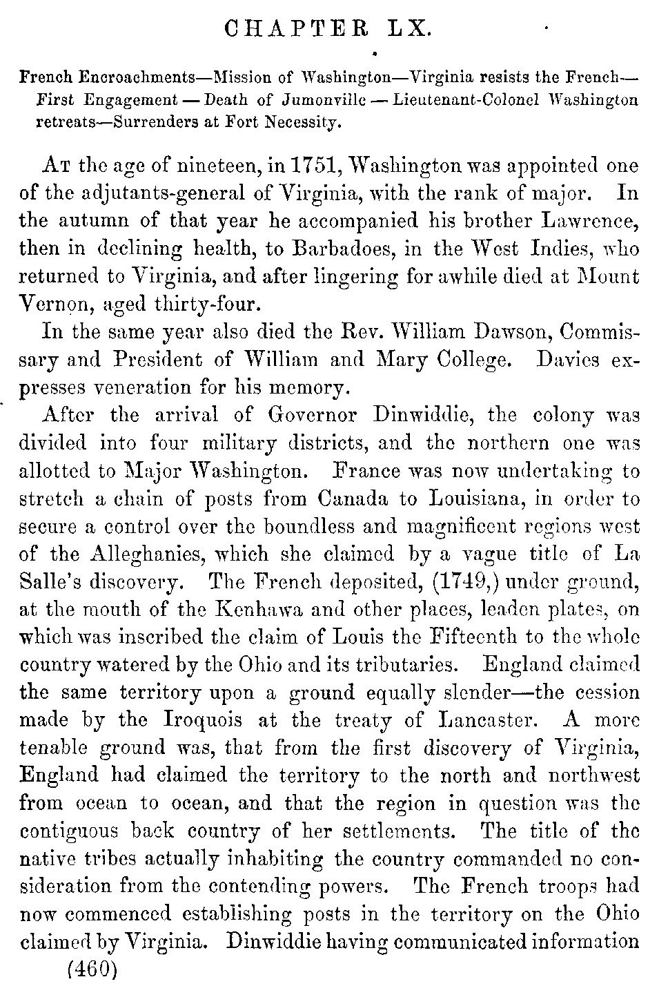 | LX. | —Hostilities with the French. Death of Jumonville. Washington surrenders at Fort Necessity. | 460 |