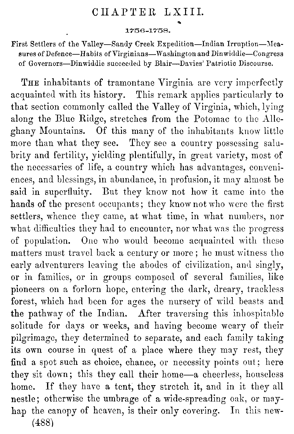| LXIII. | —Settlers of the Valley. Sandy Creek Expedition. Dinwiddie succeeded by President Blair. | 488 |