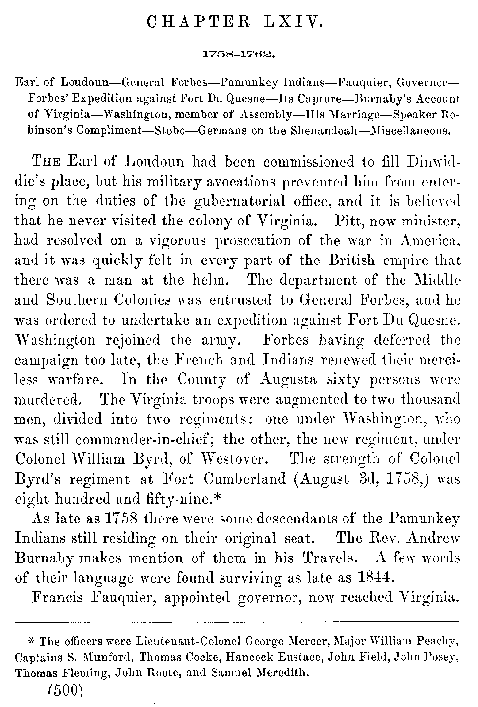 | LXIV. | —Fauquier, Governor. Forbes captures Fort Du Quesne. | 500 |
