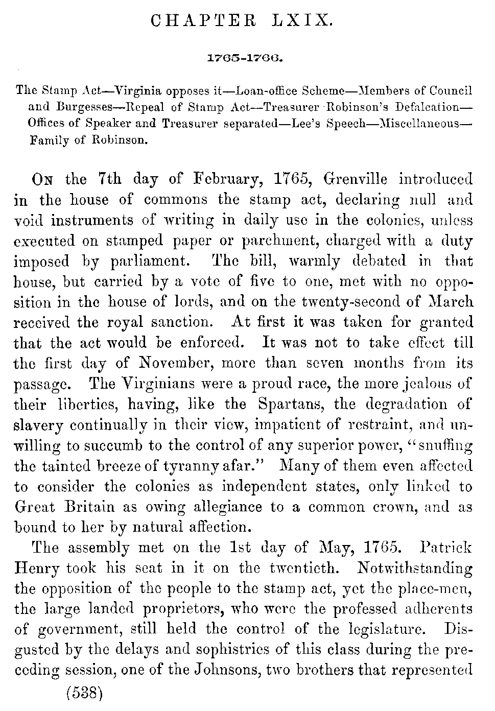 | LXVIII. | —Disputes between Colonies and Mother Country. Stamp Act. Speaker Robinson, Randolph, Bland, Pendleton, Lee, Wythe. | 530 |