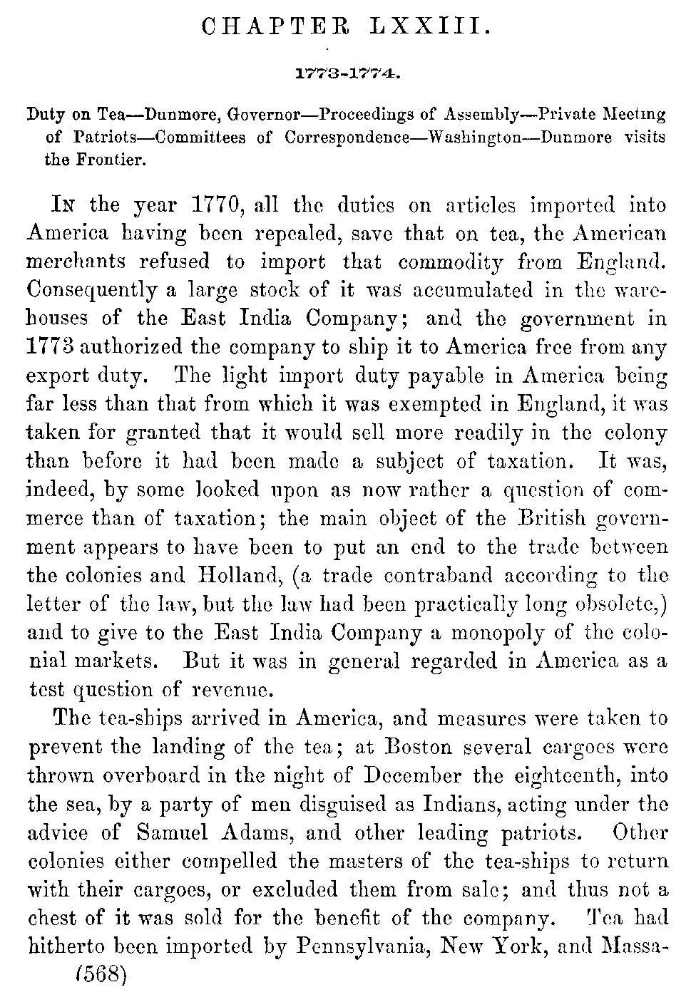 | LXXIII. | —Duty on Tea. Dunmore, Governor. Revolutionary Proceedings. | 568 |