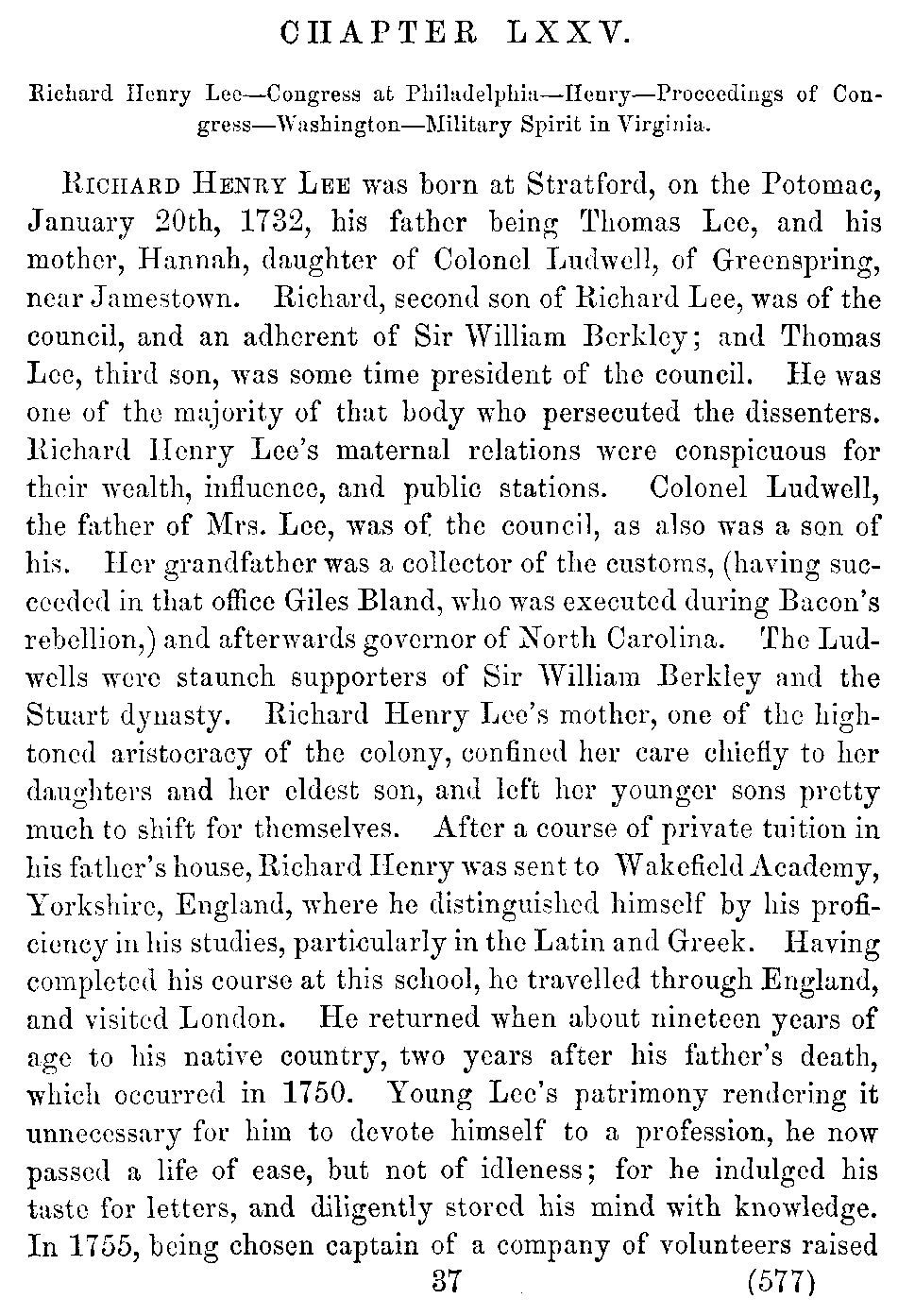 | LXXV. | —Richard Henry Lee. Congress at Philadelphia. Patrick Henry. Washington. | 577 |
