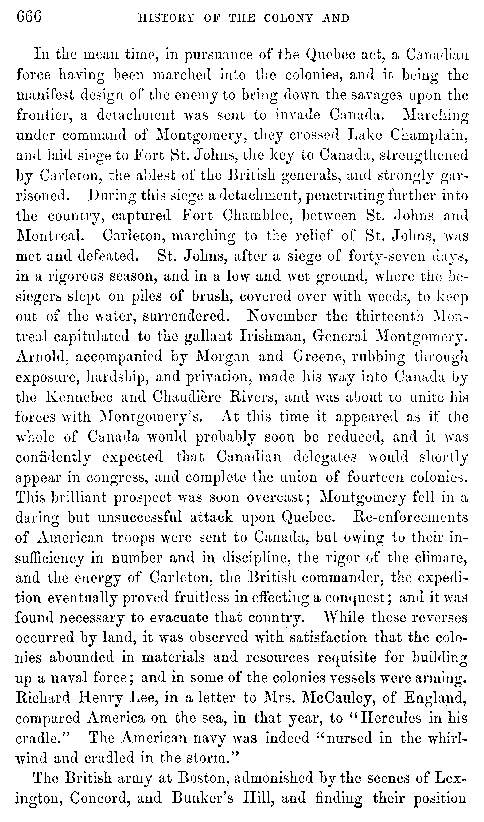 [732:A] It is said that as one of the gentlemen, who was rather embonpoint, and who in this emergency had found time to put on nothing but his breeches, ran across the yard in full view of the British dragoons, they burst into a fit of laughter at so extraordinary a phenomenon.