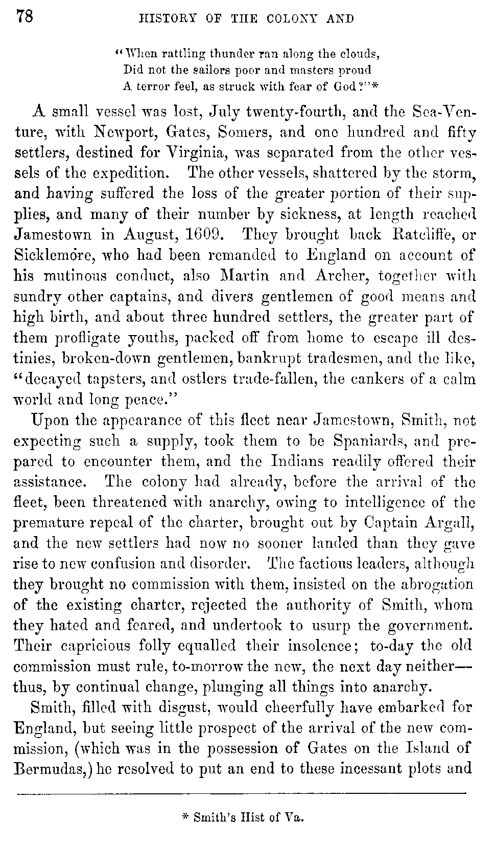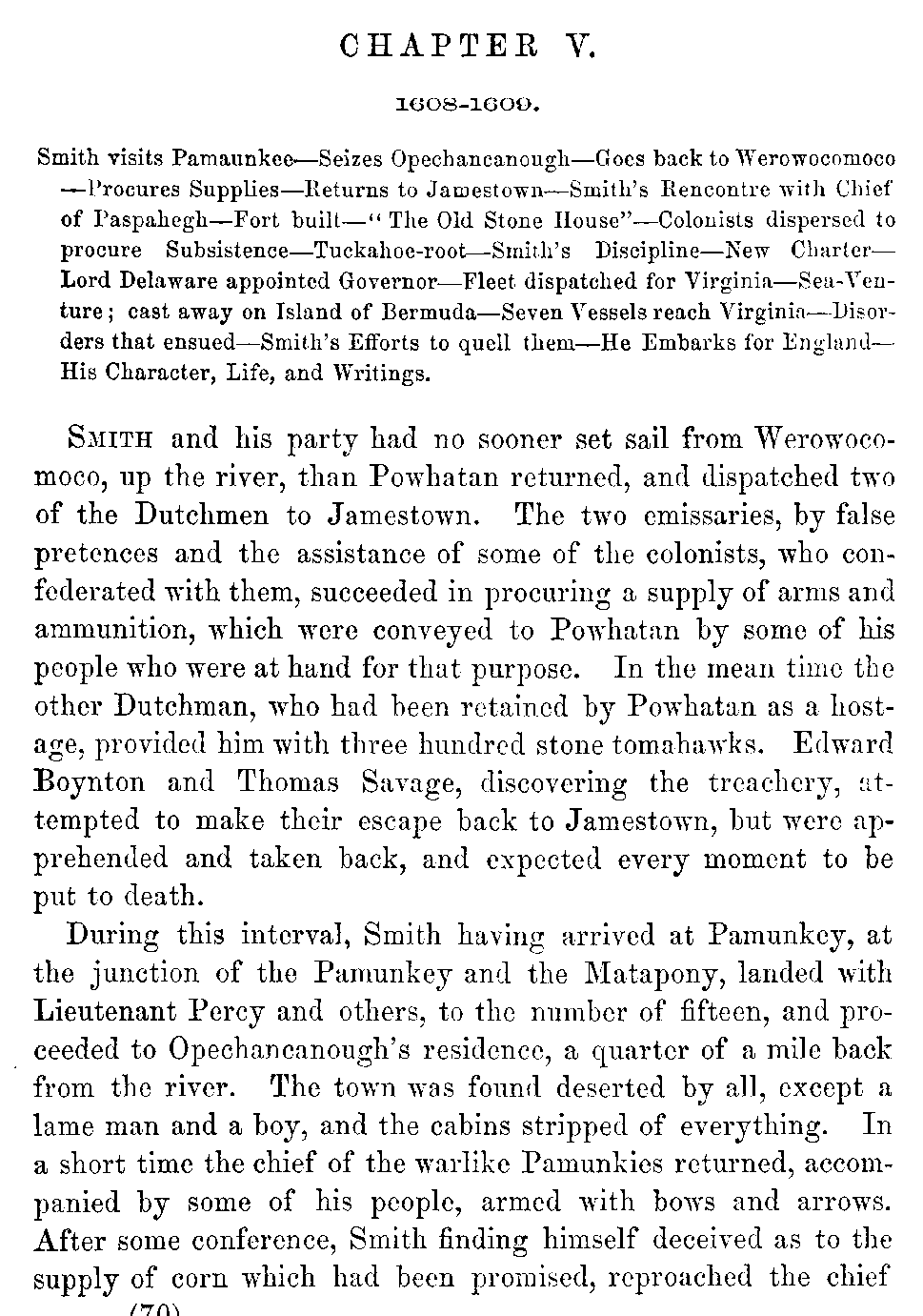 | V. | —Smith's Adventures with the Indians. His Administration of the Colony. His Departure. His Character and Writings. | 70 |