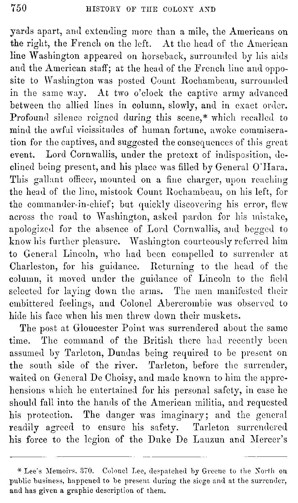 [750:A] Lee's Memoirs, 370. Colonel Lee, despatched by Greene to the North on public business, happened to be present during the siege and at the surrender, and has given a graphic description of them.