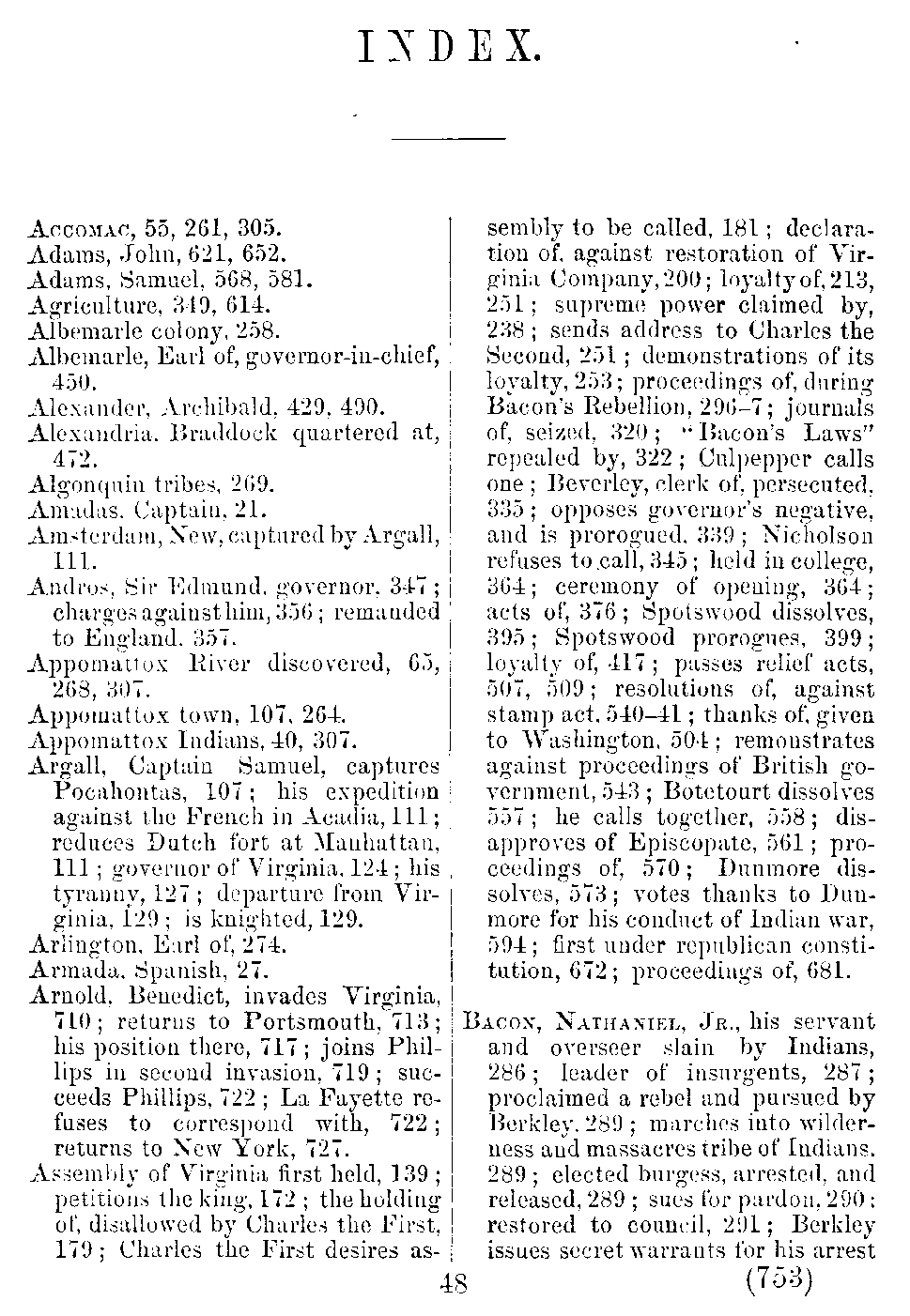 Page 754, under Bacon, Nathaniel, Sr.: president of council, 344.[period missing in original]