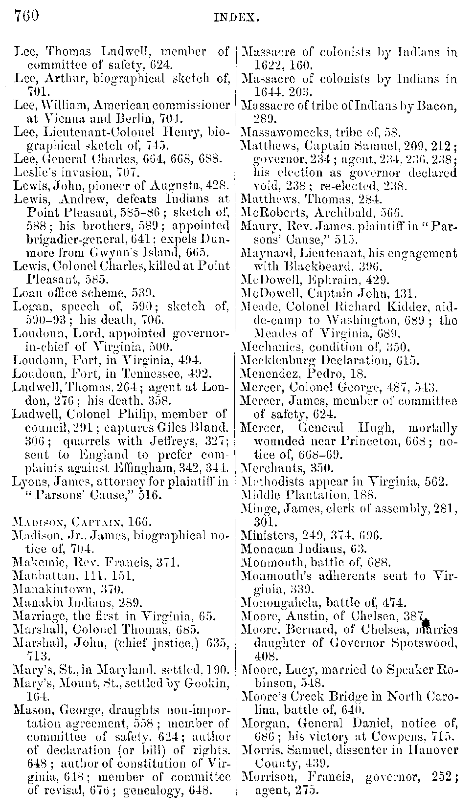 Page 760: Massawomeks[original has Massawomecks], tribe of, 58.