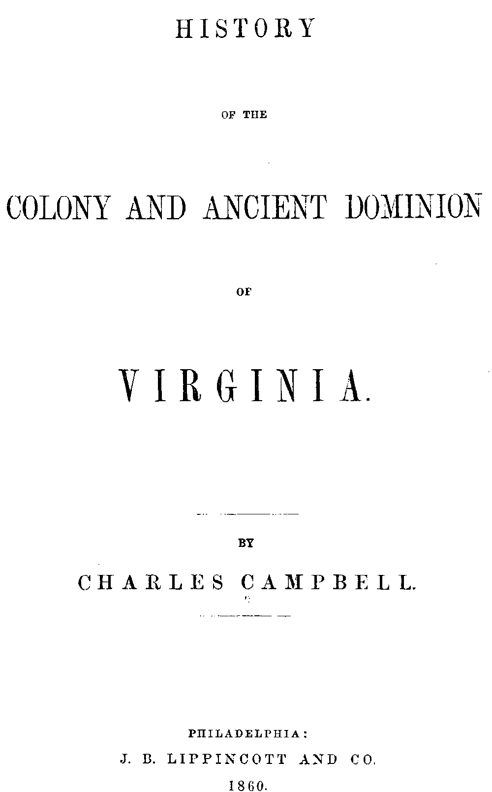 Title: History of the Colony and Ancient Dominion of Virginia