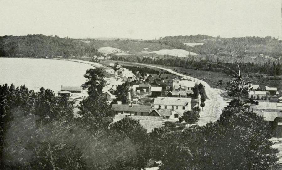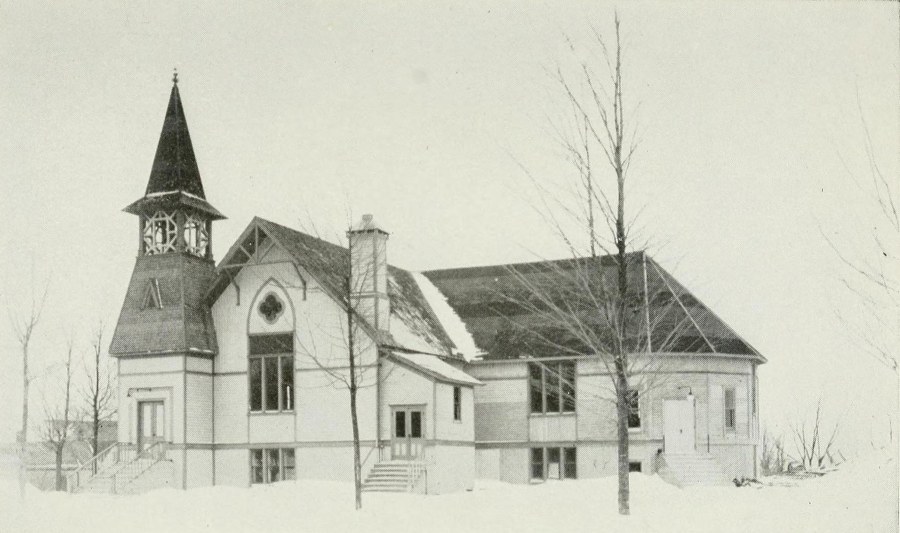 These modern Pilgrims repeated with some modification the experiences of their New England prototypes. After a long and stormy voyage on the Great Lakes they landed in the late autumn on an inhospitable[Pg 4] coast, built them some rough shanties that their descendants would not consider worthy to shelter their cattle, and there they passed a severe winter. They explored the northwestern Michigan woods, and finally, with a strange indifference to the importance of a railway to the development of a town, they lighted upon a level plateau on the top of a high hill, two hundred feet above the placid waters of beautiful Lake Crystal, and eight miles from Lake Michigan, and there they pitched their tents. Like Abraham, their first work after entering the Promised Land was to build an altar to Jehovah, and like him and their New England ancestors, they built it on the highest elevation that they could find. One of the first things they did was to select a site for a church and for a school, and, standing under the tall maples and beeches, with hymn and prayer, to dedicate that high hilltop to the cause of Christian education.