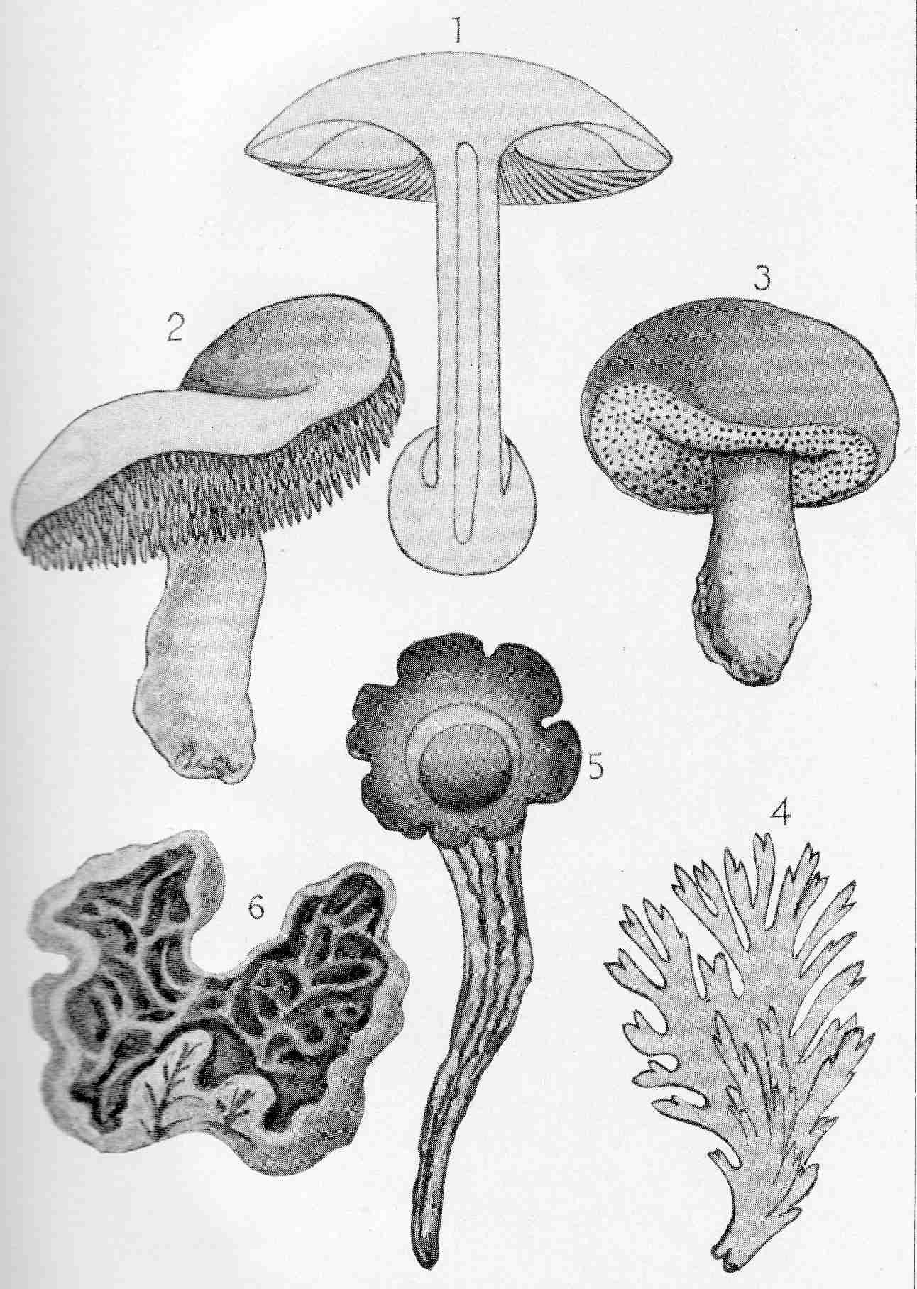 In Plate B is represented a leading type of each of the six orders of the family Hymenomycetes: