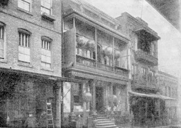 These light roofs, however, are in constant danger of being stripped off by the typhoons, terrible storms which come with a twisting motion as if rising from the earth or the sea, fairly pulling everything detachable after them. Masts of ships and roofs of houses are frequently carried by these hurricanes miles distant. The better to resist the typhoons, most of the light native houses are built on bamboo poles, which allow the wind to pass freely under them, and sway and bend in the storm like a tree; whereas, if they were set solidly on the earth, they would be lifted up bodily and carried away. Glass windows being too frail to resist the shaking of the earthquakes and the typhoons, small, translucent oyster shells are used instead. The light thus admitted resembles that passing through ground-glass, or, rather, stained glass, for the coloring in the shells imparts a mellow tinted radiance like the windows of a cathedral.