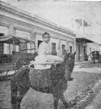 The streets of Manila are wretchedly paved or not paved at all, and as late as 1893 were lighted by kerosene lamps or by wicks suspended in dishes of cocoanut oil. Lately an electric plant has been introduced, and parts of the city are lighted in this manner. There are two lines of street cars in Manila. The motive power for a car is a single small pony, and foreigners marvel to see one of those little animals drawing thirty-odd people.