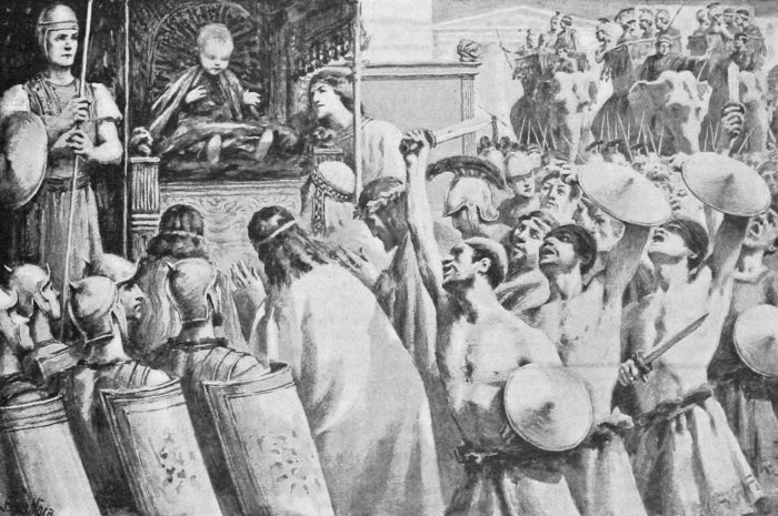 It was a vast possession. It stretched from Greece to India, from Egypt to Siberia; it was such as only a genius could have conquered and only a genius could rule. With Alexander dead and only a baby as its lord it was already[Pg 786] in danger. But Roxana the Queen said, boldly, "My boy shall be King," and all the "Companions of Alexander," as his generals and ministers were called, echoed her words: "The boy shall be King!" And so it came to pass that at the great display in Babylon the little son of Alexander was honored and sainted and adored as the successor of his imperial father.