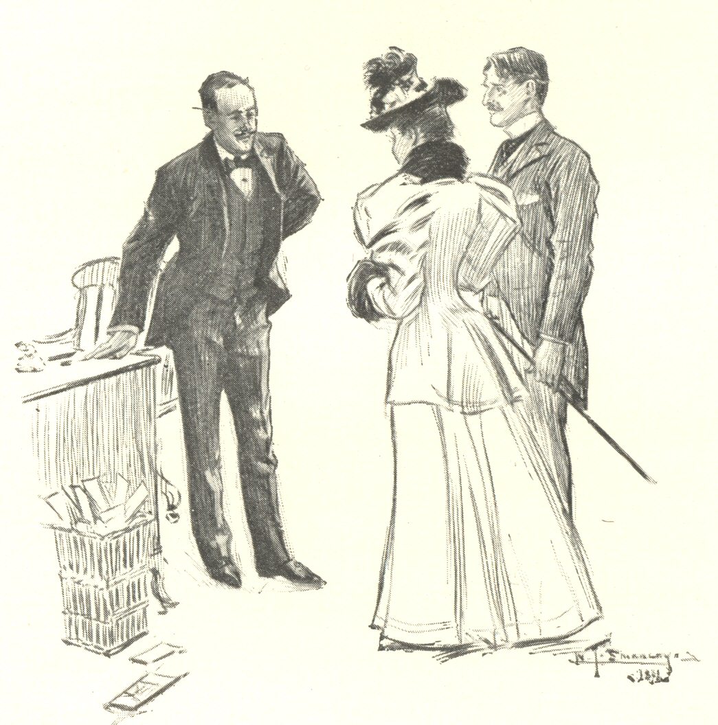 “The success of your Tiffin-Talk,” they wrote, “has been such that we are p. 11prepared to offer you our highest terms for a short story of 30,000 words, or thereabouts, to be published in our ‘Blue and Silver Series.’ We should like to have it a love-story, if possible; but whatever it is, it must be characteristic, and ready for publication in November. We shall need to have the manuscript by September 1st at the latest. If you can let us have the first few chapters in August, we can send them at once to Mr. Chromely, whom it is our intention to have illustrate the story, provided he can be got to do it.”