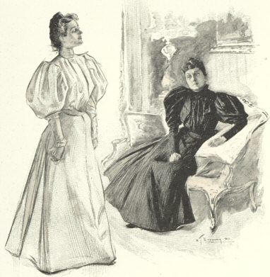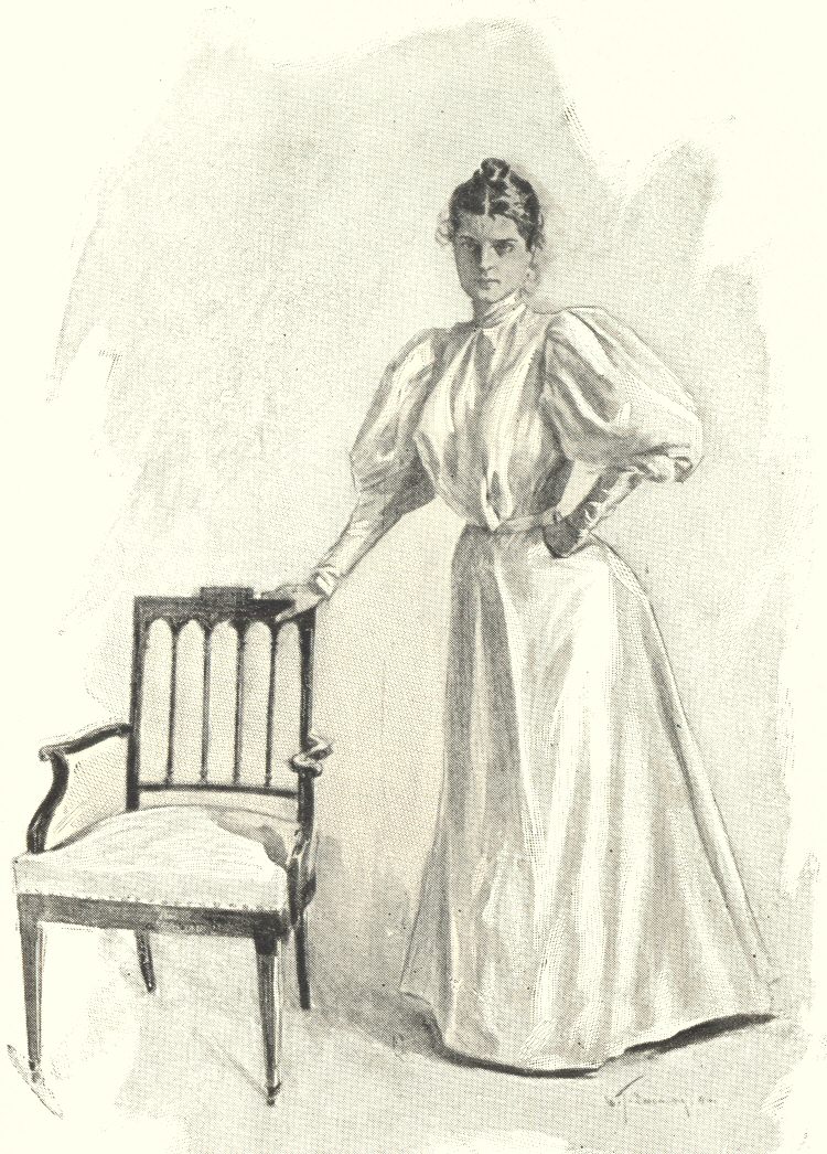 “Your surmise is correct,” she answered, sadly; and then, with some spirit, she added: “And they are finishing-touches with a vengeance. I have been loyal to my word, in spite of much discomfort. I have travelled from pillar to post as meekly as a lamb, because it fitted in with Stuart Harley’s convenience that I should do so. He has taken me and my friend Mrs. Willard to and through five different summer resorts, where I have cut the figure he wished p. 200me to cut without regard to my own feelings. I have discussed all sorts of topics, of which in reality I know nothing, to lend depth to his book. I have snubbed men I really liked, and appeared to like men I profoundly hated, for his sake. I have wittingly endured peril for his sake, knowing of course that ultimately he would get me out of danger; but peril is peril just the same, and to that extent distracting to the nerves. I have been upset in a canoe at Bar Harbor, and lost on a mountain in Vermont. I have sprained my ankle at Saratoga, and fainted at a dance at Lenox; but no complaint have I uttered—not even the suggestion of a rebellion have I given. Once, I admit, I was disposed to resent his desire that I should wear a certain costume, which he, man as he is, could p. 201not see would be wofully unbecoming. Authors have no business to touch on such things. But I overcame the temptation to rebel, and to please him wore a blue and pink shirt-waist with a floral silk skirt at a garden-party—I suppose he thought floral silk was appropriate to the garden; nor did I even show my mortification to those about me. Nothing was said in the book about its being Stuart Harley’s taste; it must needs be set down as mine; and while the pages of Harley’s book contain no criticism of my costume, I know well enough what all the other women thought about it. Still, I stood it. I endured also without a murmur the courtship and declaration of love of a perfect booby of a man; that is to say, he was a booby in the eyes of a woman—men p. 202might like him. I presume that as Mr. Harley has chosen him to stand for the hero of his book, he must admire him; but I don’t, and haven’t, and sha’n’t. Yet I have pretended to do so; and finally, when he proposed marriage to me I meekly answered ‘yes,’ weeping in the bitterness of my spirit that my promise bound me to do so; and Stuart Harley, noting those tears, calls them tears of joy!”