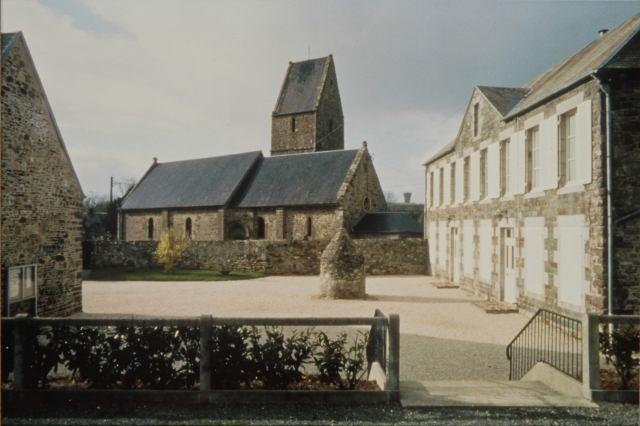 081. Angey. The church and its cemetery. The church is under St. Samson's patronage, and the second saint is St. John the Baptist. The parish of Angey belonged to the deanery of Genêts and the archidiachoné of Avranches. In 1162, the church of Angey and its dependencies were given to the Abbey of the Lucerne by William of St. Jean. The abbot of the Lucerne was the lord of the church from then on. Photo by Marie Lebert. [Marie-12]