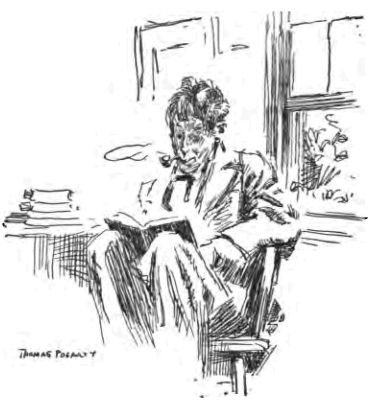 She came down the room toward me with a quick, businesslike step. She wore a little round straw hat with a plain band. She had a sprig of lilac on her coat, and looked at me directly—like a man. She had very clear blue eyes.