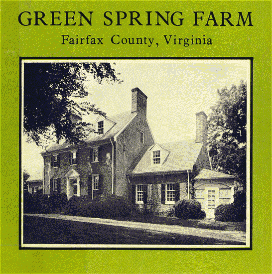 This report is published under authority of the Board of Supervisors of the County of Fairfax. It is one result of a program of historical site survey and research carried on by the Fairfax County Division of Planning in cooperation with the Fairfax County History Commission. The original selection of Green Spring Farm as a research topic was made by the Fairfax County Historical Landmarks Preservation Commission, Bayard D. Evans, Chairman, the predecessor of the present History Commission as the chief historical agency of the County Government.