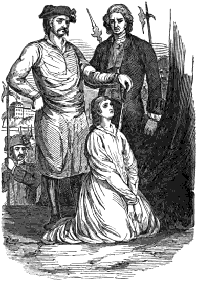 The French now carried all before them, under the guidance of this maiden leader; and, in three months after she came to the relief of Charles, he was crowned at Rheims, which had surrendered to his arms. After a series of successes, she was in one instance defeated, and finally was captured in a sally against the enemy, May, 1430. She was now handed over to the English partisans in France, brought to trial on the charge of sorcery, and condemned to death. A pile of wood was prepared in the market-place at Rouen, and, encircled by a body of judges and ecclesiastics, she was then burned to death, and her ashes thrown into the Seine. This took place in May, 1431. Thus perished one of the most pure, lovely, and exalted beings that ever lived. In 1454, a revision of her sentence took place, and a monument was erected to her honor, on the spot where she had been inhumanly put to death.