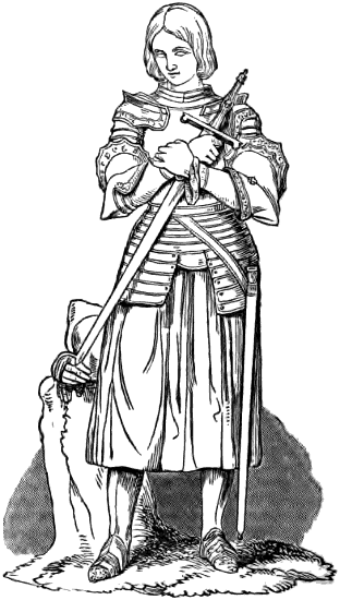 Charles, though he desired, still feared, the proffered aid. After due consultation, however, it was concluded to grant Joan’s request, and she received the rank of a military commander. A suit of armor was made for her, and she sent to Fierbois for a sword which, she said, would be found buried in a certain spot in the church. It was found there, and conveyed to her. The circumstance became afterwards one of the alleged proofs of her sorcery or imposture. Her having passed some time at Fierbois among the ecclesiastics of the place, must have led, in some way or other, to her knowledge of the deposit. Strong in the conviction of her mission, it was Joan’s desire to 352 enter Orleans from the north, and through all the fortifications of the English. Dunois, however, and the other leaders at length overruled her, and induced her to abandon the little company of pious companions which she had raised, and to enter the beleaguered city by water, as the least perilous path. She succeeded in carrying with her a convoy of provisions to the besieged.