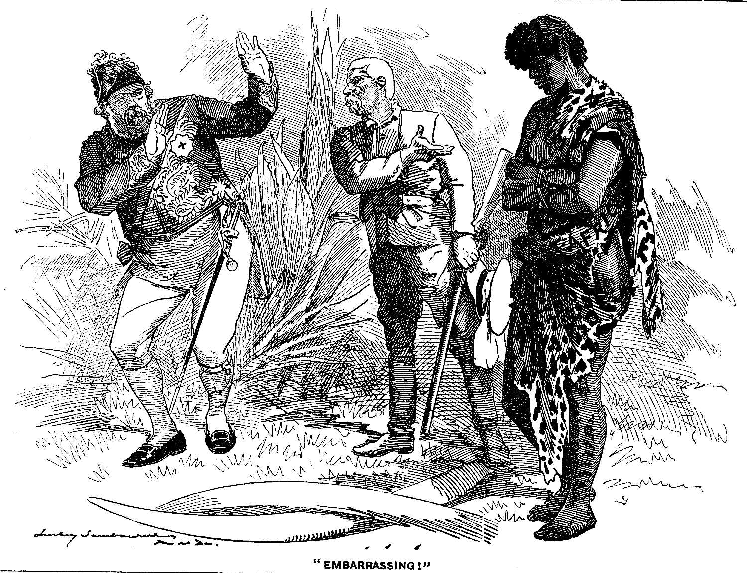 "Though the topic of Africa is said to be 'embarrassing and inconvenient,' it need not occasion any uneasiness at all; but if the British Government surrenders any portion of the territory reserved for the sphere of British influence, it may become most terribly embarrassing within a measurable period of time."—Stanley's Reply to Lord Salisbury.