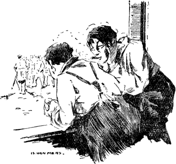 Wat de anderen achterlaten, kan ik bij verre na niet nagaan. De man naast mij, naar zijn adem te oordeelen, een ledige jenever-flesch, en die tegenover mij een huilende vrouw... Enfin, dat alles zal ik nog vernemen!