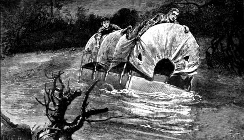 "THE STRANGE CRAFT WAS BORNE SLOWLY DOWN STREAM"
