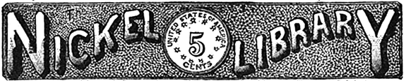 Has very justly become the most popular series of novelettes that has ever been offered to the public. The reason of this is apparent: The publishers will not re-print old stories. Each number of the Nickel Library is fresh and original, and this makes it unlike any other series in the United States. Every issue is copyrighted by the publishers, according to the act of Congress. Further than this every number is complete in itself, no double numbers, and all the books are of uniform size.