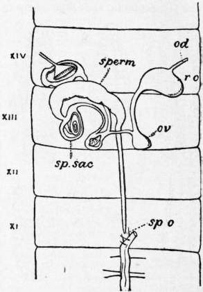 The bones generally are spongy in texture, the cavities being filled with oil. In the vertebral column, the cervical region is short and immobile, and the vertebrae, always seven in number, are in many species more or less fused together into a solid mass. The odontoid process of the second cervical vertebra, when that bone is free, is usually very obtuse, or even obsolete. In a paper on the form and function of the cervical vertebrae published in the Jenaische Zeitschrift for 1905, Dr O. Reche points out that the shortening and soldering is most pronounced in species which, like the right-whales, live entirely on minute organisms, to capture which there is no necessity to turn the head at all. Accordingly we find that in these whales the whole seven cervical vertebrae are fused into an immovable solid mass, of which the compound elements, with the exception of the first and second, are but little thicker than plates. On the other hand, in the finner-whales, several of which live exclusively on fish, and thus require a certain amount of mobility in the head and neck, we find all the cervical vertebrae much thicker and entirely separate from one another. Among the dolphin group the narwhal and the white whale, or beluga, are distinguished from all other cetaceans by the great comparative length of their cervical vertebrae, all of which are completely free. In the case of the narwhal such an abnormal structure is easily accounted for, seeing that to use effectively the long tusk with which the male is armed a considerable amount of mobility in the neck is absolutely essential. The beluga, too, which is believed to feed on large and active fishes, would likewise seem to require mobility in the same region in order to effect their capture. On the other hand, the porpoise preys on herrings, pilchards and mackerel, which in their densely packed shoals must apparently fall an easy prey with but little exertion on the part of their captor, and we accordingly find all the neck-vertebrae very short, and at least six out of the seven coalesced into a solid immovable mass. None of the vertebrae are united to form a sacrum. The lumbar and caudal vertebrae are numerous and large, and, as their arches are not connected by articular processes (zygapophyses), they are capable of free motion in all directions. The caps, or epiphyses, at the end of the vertebral bodies are flattened disks, not uniting until after the animal has attained its full dimensions. There are largely developed chevron-bones on the under side of the tail, the presence of which indicates the distinction between caudal and lumbar vertebrae.