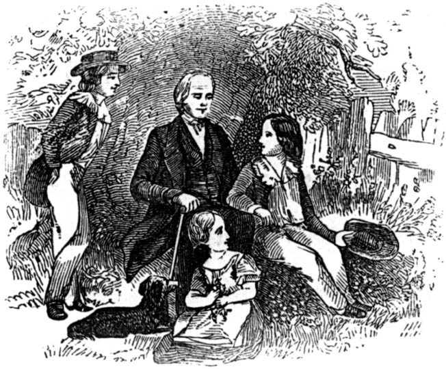 While they were busy chasing each other round the yard, all of them as merry as the birds that were having a concert on the branches, over their heads, a wagon drove up, and Captain Lovechild got out of it, and went into the house. This gentleman lived in Boston. He was quite a rich man, [55]having made a great deal of money by going to sea. The captain was a relative of Deacon Bissell, and often came to see him and his family, taking good care, generally, in his visits, to bring something with him to please the little folks.
