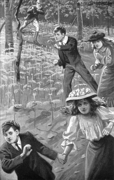 "Stop! Stop! Don't run! It will be sure to follow you!" shouted Cathy; but even if Ernestine heard her, I doubt if she would have had the self-control to stay her flying footsteps. It was too late, for with a loud bellow the great animal was rushing madly after her down the slope. It seemed impossible that she could reach the wall in time. There was only a moment in which to save her, but I had read in books that a bull always charges blindly, and quick as thought I pulled off my jacket, and dashed forward.