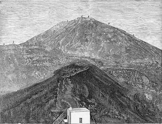 [A] This small cone, as it appeared on the 1st April, is described and drawn in a Memoir of Professor von Rath, of the University of Bonn, on "Vesuvius on the 1st and 17th of April, 1871."