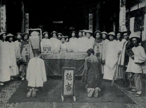 [3] We have known occasional instances in which a betrothed girl was not required to attend the funeral of her future father-in-law or mother-in-law, a trying ordeal which she must be glad to escape. Sometimes when she does attend, she merely kneels to the coffin, but does not “lament,” for usage is in this, as in other particulars, very capricious.